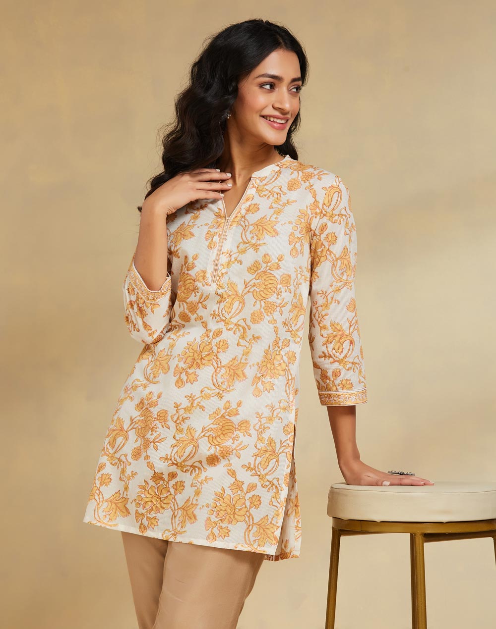 Natural Cotton Slim Fit Hand Block Printed Short Kurta